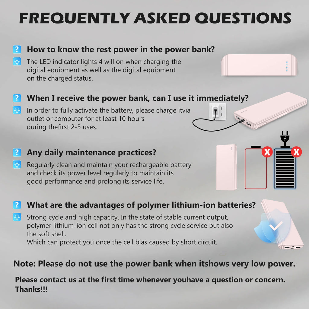 - Power bank with dual USB, Type-C and Mic usb for fast charging, perfect for travel, wild adventures, hiking, party power outages and special situations, always have enough power.