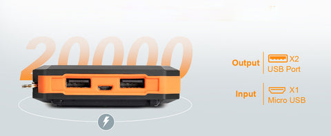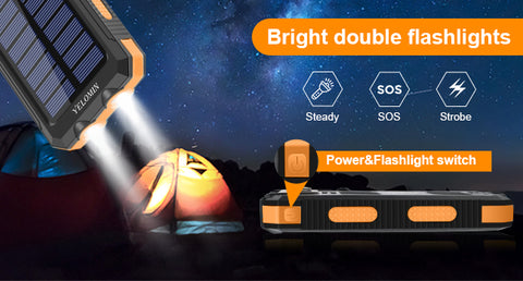The solar bank with dual flashlights has 3 powerful modes(Steady-SOS-Strobe mode). It leads you through darkness and emergencies as a lifesaver. Make sure it's fully charged, otherwise it won't be enough to turn on the flashlights.