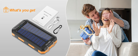 - 【Two Different Charging Methods 】: 38800mAh External battery charger with solar panel can recharge by sunlight or outlet. In daily life, It's highly recommended to charge it via a wall outlet, take the solar charging feature as the emergency backup solution. The USB battery pack can be regarded as a nice gift. The USB cable in the package is only used to charge the solar charger. It is not recommended to charge other devices, which may slow down the charging efficiency due to incompatibility.
