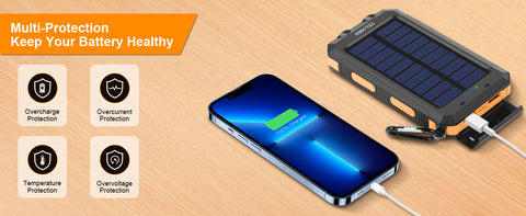 4.Please do not take solar as a primary charge source. Solar charging is a charging way for emergency use. In daily life, we highly recommend charge it via wall outlet. Please kindly know that solar charging is an additional feature, the actual result may not be as positive as you expect for the small panel size, large capacity, and uncontrollable sunlight intensity. Thank you for your understanding!