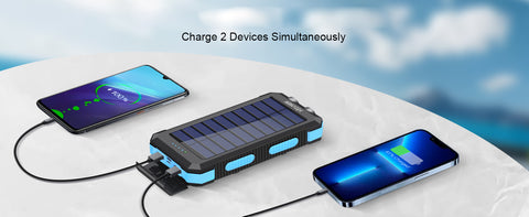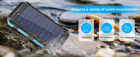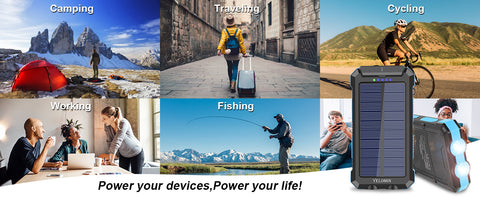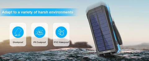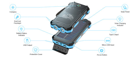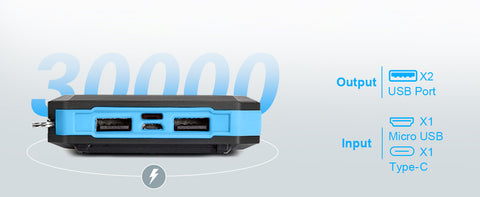 - 【Two Different Charging Methods 】: Upgrade 30000mAh External battery charger with solar panel can recharge by sunlight or outlet. In daily life,It's highly recommended to charge it via a wall outlet, take the solar charging feature as the emergency back-up solution.