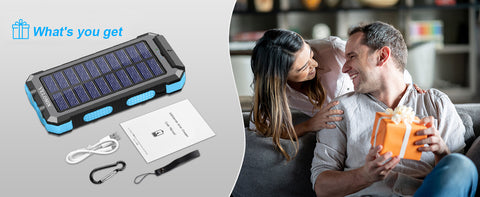 - 【30000mAh Upgrade High Capacity】: Solar battery charger built in high-quality 30000mAh battery. Portable Solar Charger supports your phone to charge at least 5-6 times,whether you are in travel, adventure, rock climbing,you don’t have to worry about your phone without power. Newest 30000mAh solar USB battery keeps your phone fully charged, even during hurricanes and unexpected power outages. The solar charger can be regarded as a nice gift.