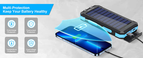 4.Please do not take solar as a primary charge source. Solar charging is a charging way for emergency use. In daily life, we highly recommend charge it via wall outlet. Please kindly know that solar charging is an additional feature, the actual result may not be as positive as you expect for the small panel size, large capacity, and uncontrollable sunlight intensity. Thank you for your understand!